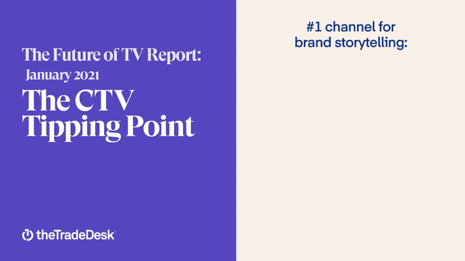 Of course, there are different chapters that go into telling a good story. And this is where CTV comes into its own, by enabling sequential messaging for brands who’ve got a good story to tell. In fact, a study conducted by The Trade Desk and Advertiser Perceptions, bears this out. Our research shows that 43 percent of marketers identified CTV as the best channel for brand storytelling in 2021. This was followed by social media (29 percent) and linear TV (26 percent).