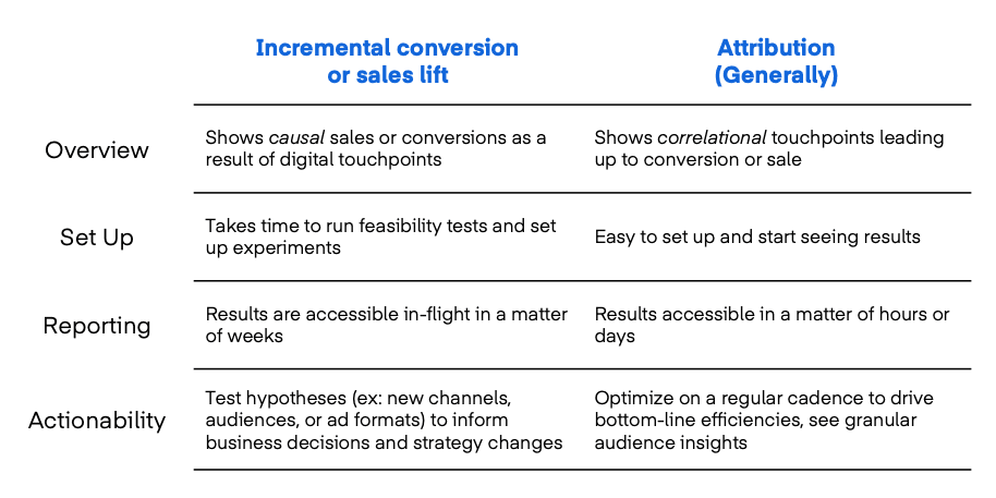 Attribution and incrementality both measure performance. At a high level, how do the two differ from each other?