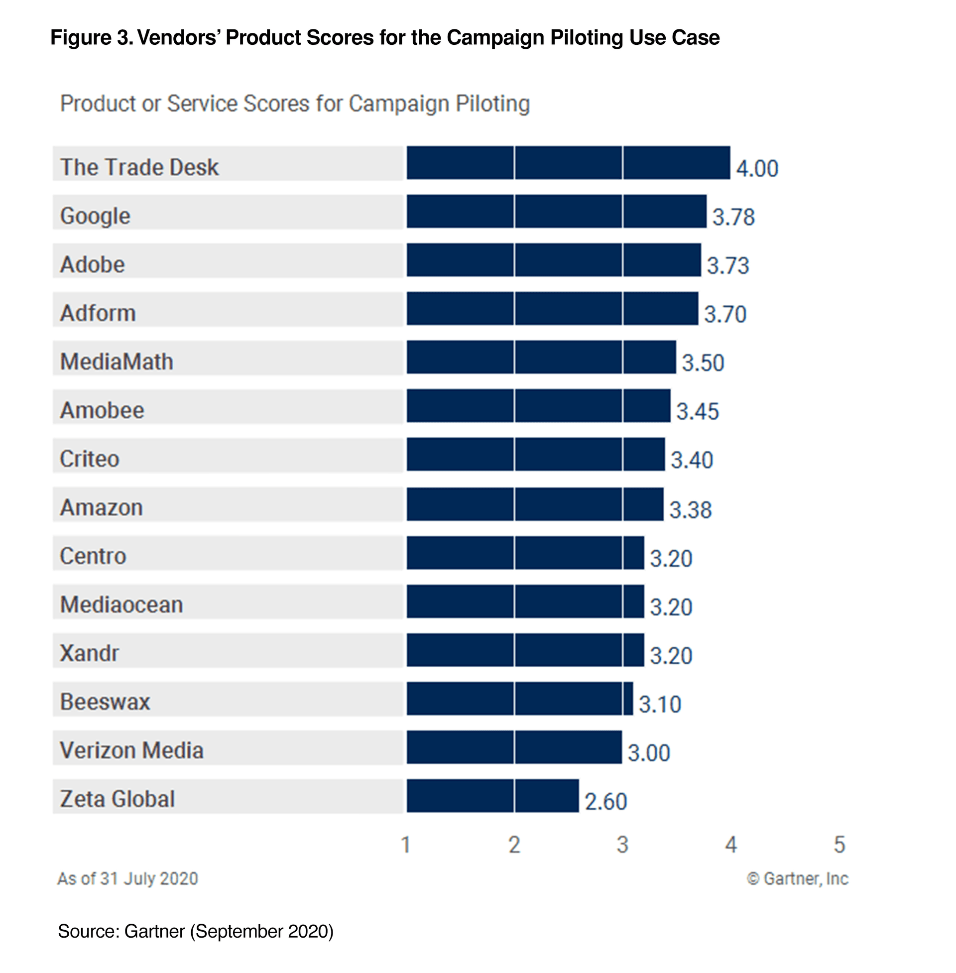 The Trade Desk has also been recognized in the companion research report, Critical Capabilities for Ad Tech2, earning high scores for all use cases, including the highest scores for Campaign Setup and Campaign Piloting use cases.